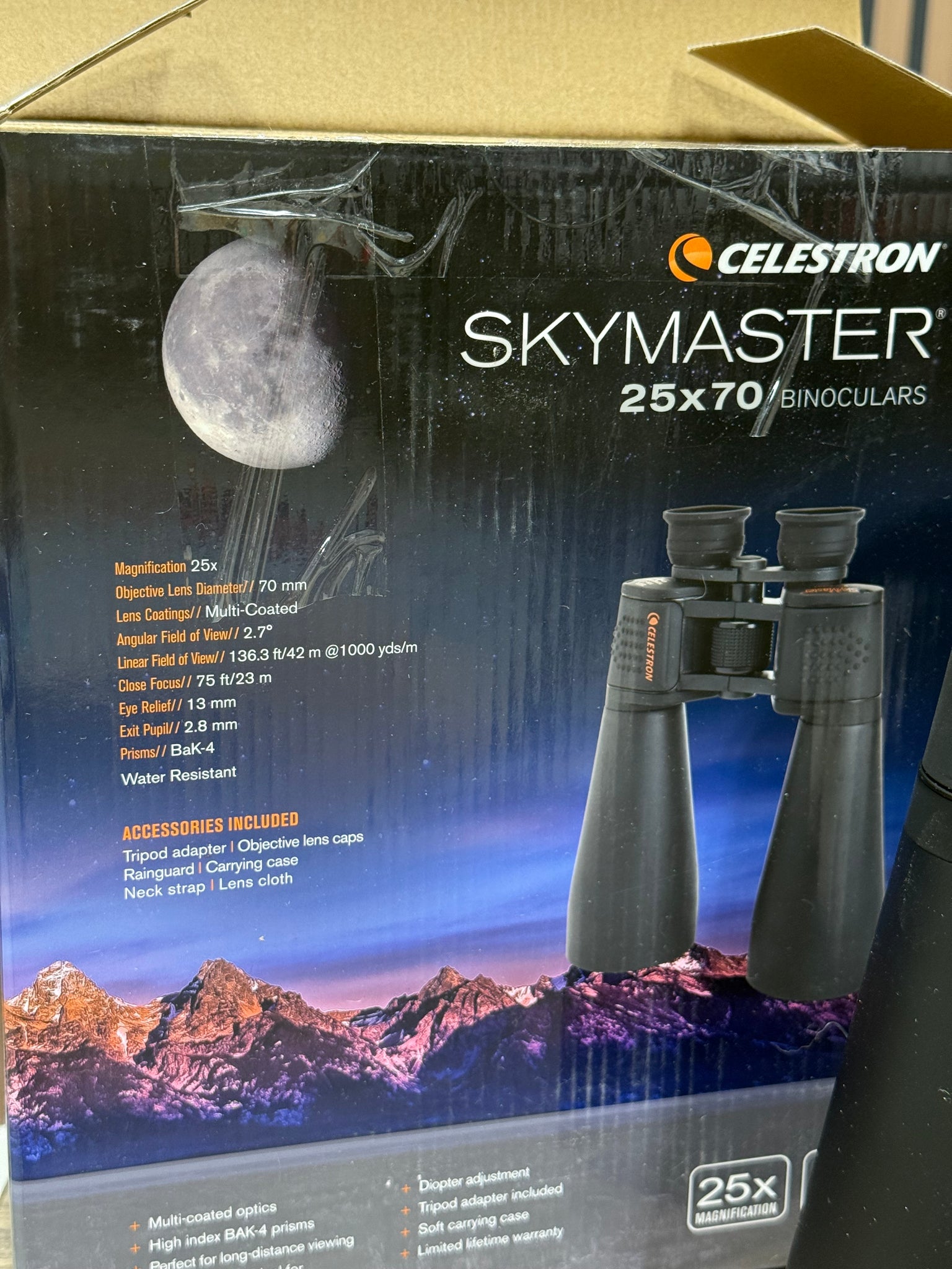 Celestron 71008 SkyMaster 25x70mm Porro Prism Binoculars with Multi-Coated Lens, BaK-4 Prism Glass and Carry Case, Black
