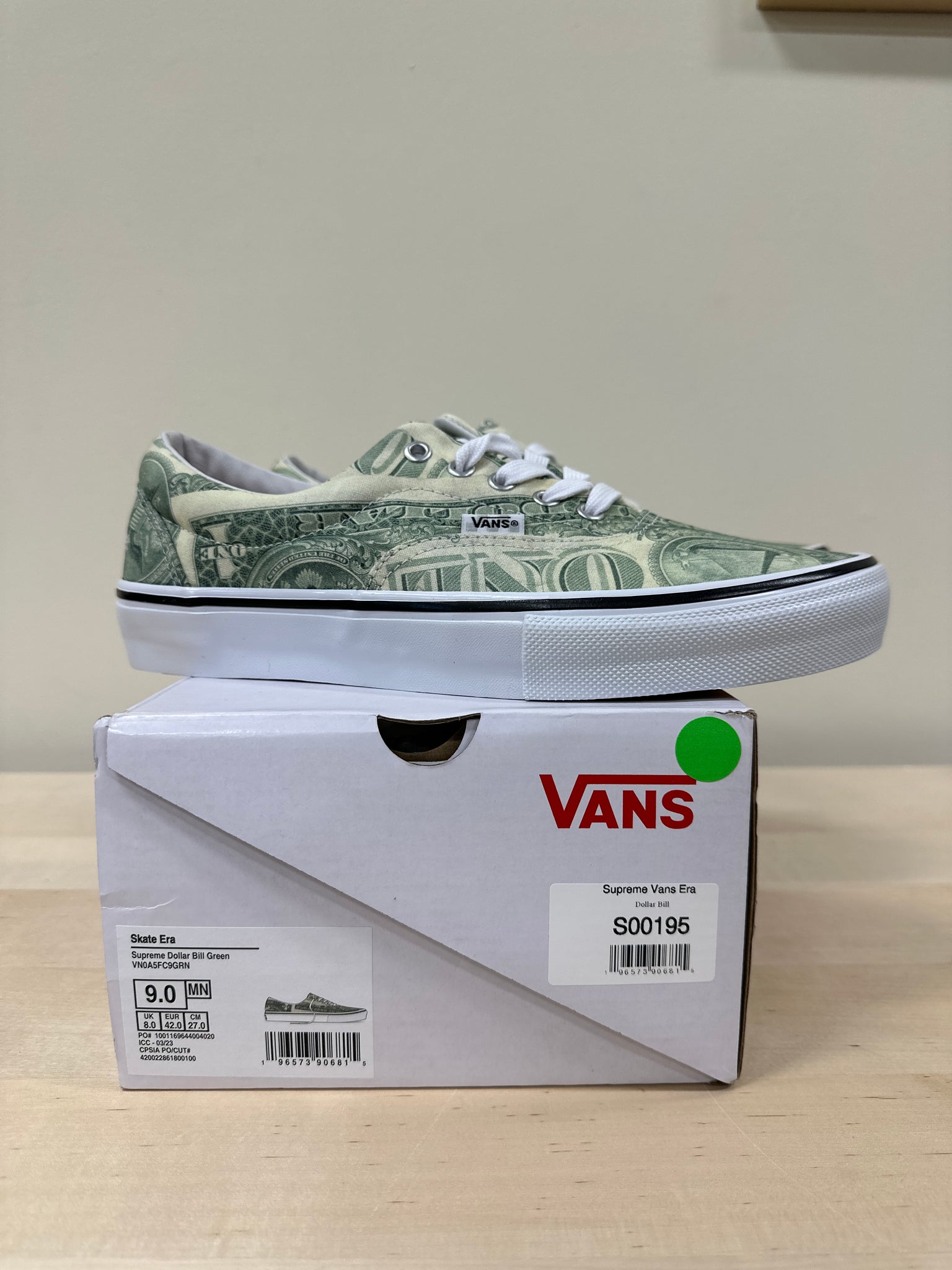 Vans Era x Supreme "Dollar Bill" Sz 9